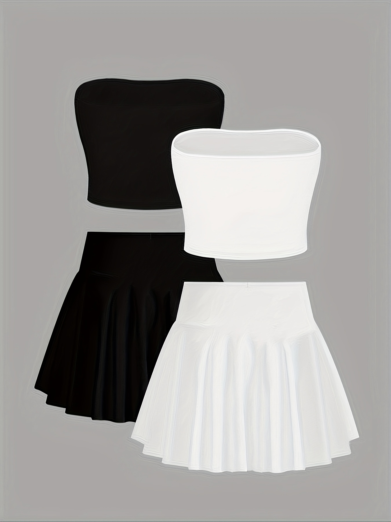 Sexy Tube Top + Versatile A-Line Skirt Set of 4pcs