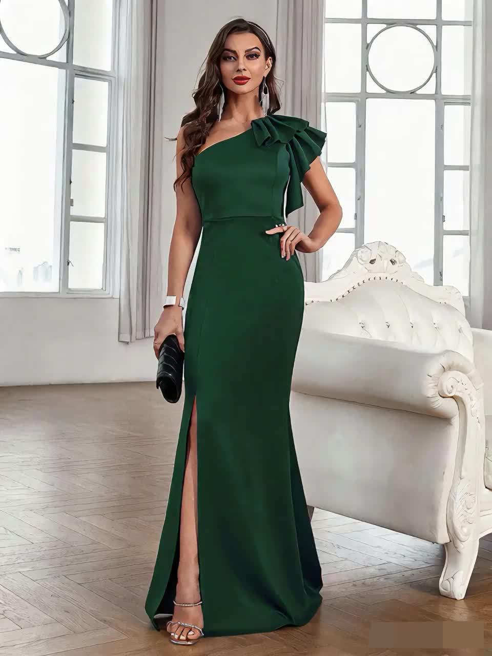 Women's Elegant One-Shoulder Formal Party dress - Formal Event Evening Gown, Machine Washable Wedding, Prom, Birthday Party Dress - Elegant Evening Attire for Women, Fitted Silhouette, Highquality Fabric, Stylish Gown, Bridal Guest